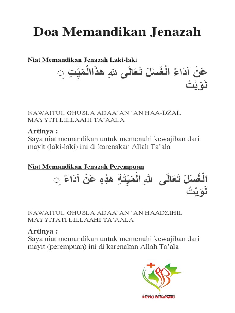 Doa Niat Memandikan Jenazah Laki Laki Dan Perempuan Lengkap