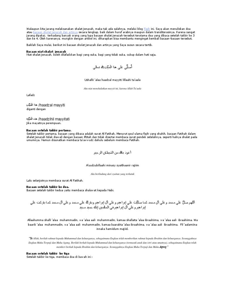 Bacaan Sholat Mayit Niat Arab Latin Terjemah Laki