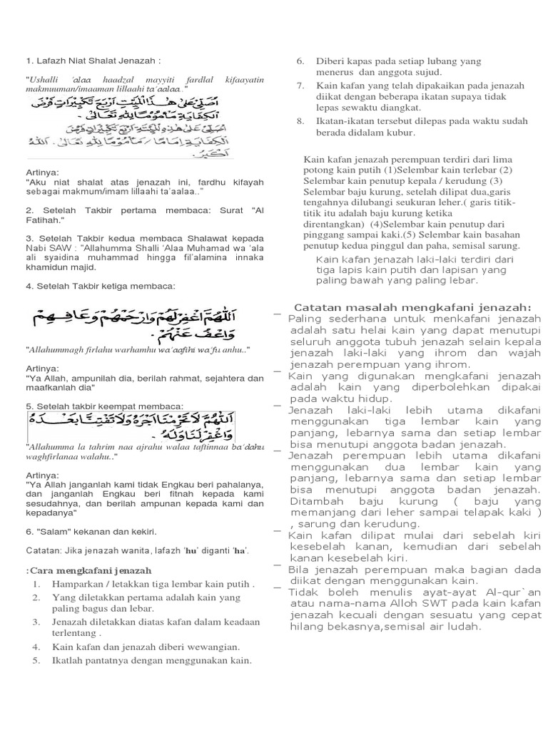 Doc Bacaan Shalat Jenazah Niat Dan Tata Caranya Putri