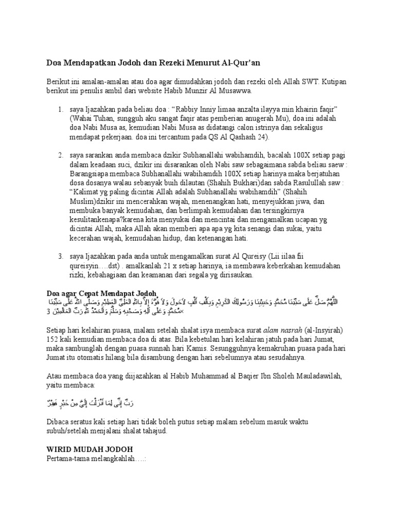Demikianlah kumpulan mengenai beberapa doa mohon rezeki yang halal dan baik rezeki yang tak terduga dan rezeki yang melimpah ruah seperti rezeki nabi sulaiman. Berikut ini amalan amalan atau doa agar dimudahkan jodoh dan rezeki oleh allah swt. Saya ijazahkan pada beliau doa.